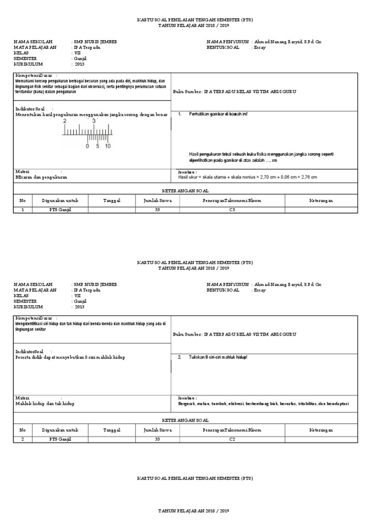 Soal ipa kelas 7 semester 2 dan kunci jawaban kurikulum 2013 soal ipa kelas 7 semester 2 beserta kunci jawaban soal ipa kelas 7 semester 2 kurikulum 2013 related papers. Soal & jawaban pat ipa kelas 7 k13 tahun 2021. 50 soal pilihan ganda, 5 soal uraian n kompetensi inti kompetensi dasar jml. Saya sertakan link download soal pas/uas ipa kelas 7 smp/mts semester 2 kurikulum 2013 dan kunci jawaban dibawah. Soal berjumlah 50 butir dengan empat alternatif jawaban dan dilengkapi kunci jawabannya. Bab 1 sistem reproduksi manusia. Lengkap soal ulangan pts/pas/pat kelas 7, 8 dan 9 smp/mts kurikulum 2013. Setiap pembelajaran tematik kelas 5 mengandung lima muatan mata pelajaran, yakni ppkn, bahasa indonesia, ipa, ips, dan sbdp. Ilmu pengetahuan alam smp/mts kelas ix semester 2. Berikut ini kami berikan contoh latihan soal uas ulangan akhir semester 1 (ganjil) kelas 7 vii smp/mts mapel ipa. Soal soal ulangan pts/pas/pat smp/mts kelas vii, viii dan ix ini sudah kami lengkapi dengan kunci jawabannya. Materi ipa kelas 9 smp/mts kurikulum 2013 edisi revisi 2018 semester 1 terbagi dalam 5 (lima) bab sebagai berikut. Kunci jawaban ulangan semester 2 kelas 7 soal ipa kadvi hawa.