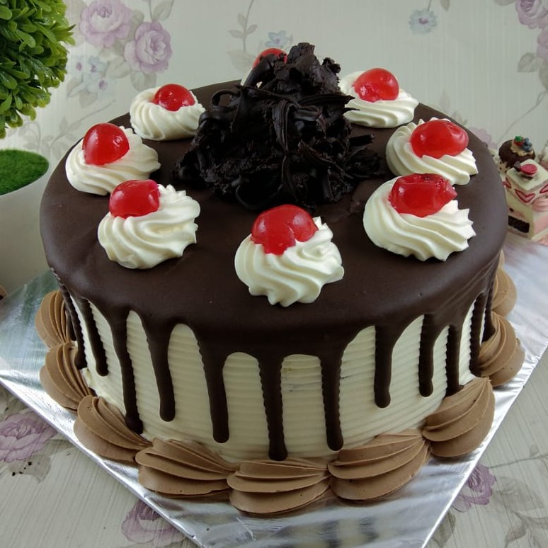 Black forest adalah kue sponge cokelat berlapis dengan topping krim dan parutan cokelat batang.